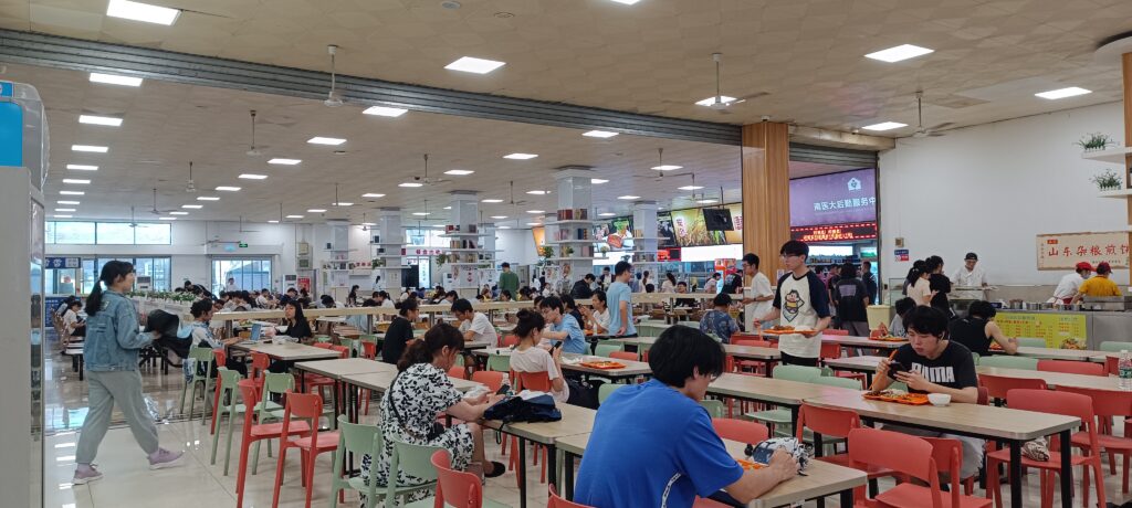 Salah satu hal yang membuat saya kagum dengan kampus-kampus di China adalah akses kantin yang begitu besar, mudah, dan nyaman. Makanan yang tersedia sangat beragam dengan harga yang relatif terjangkau. Lokasi kantin-kantin ini juga selalu dekat dengan dorm mahasiswa. Tentu kantin di kampus sudah sangat sesuai untuk melayani ribuan mahasiswa setiap harinya. Beragam makanan bisa dijumpai seperti makanan pokok masyarakat China, fast food, mini supermarket, minuman, eks krim, makanan tradisional, dll. Tempat makan yang tersedia sangat banyak dan juga nyaman. Oh iya, waktu makan siang di China adalah pukul 12.00 siang, sedangkana makan malam adalah pukul 17.00 sore. Jika sudah masuk dua waktu ini, kantin adalah tempat yang paling ramai. Pembayaran juga sangat mudah lo, cukup isi saldo school ID card kamu lewat aplikasi sekolah di HP, kemudian kamu tinggal tap di kasir. Mudah dan cepat sekali bukan? Oh iya, satu lagi yang tidak kalah menarik nih, terutama bagi mahasiswa Muslim. Mencari makanan halal memang sulit di China. Alhamdulillah, karna semakin banyaknya mahasiswa Muslim internasional yang kuliah di China, banyak kampus-kampus yang menyediakan kantin Halal. Kantin halal ini biasanya berasal dari China bagian barat yang terkenal dengan populasi Muslim asli China, seperti Xinjiang, Lanzhou, Gansu, dll. Syukur alhamdulillah, ternyata kampus memperhatikan setiap detail kebutuhan mahasiswa.