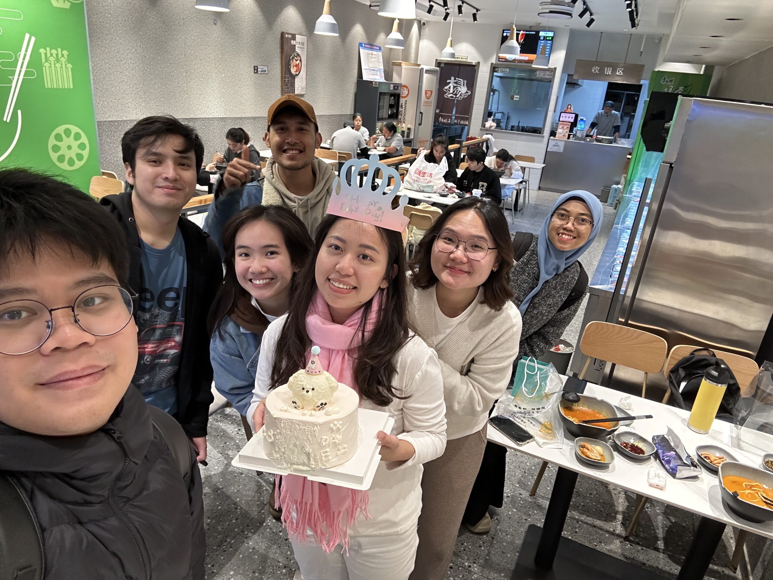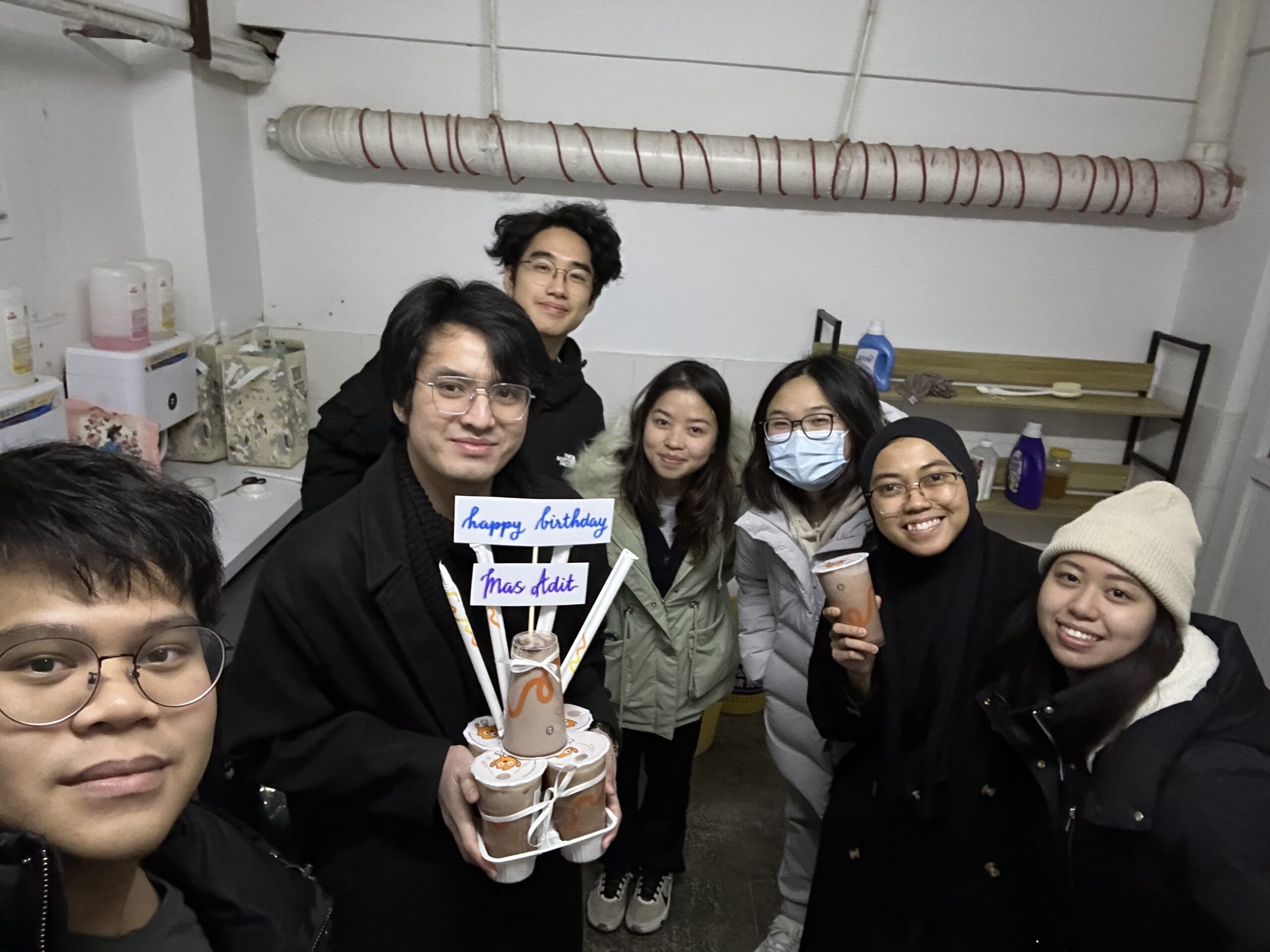 Salah satu momen yang membuat kita bisa bertemu, bercengkerama, dan bercerita satu sama lain adalah kita selalu merayakan ulang tahun satu sama lain. Kami selalu berusaha menyempatkan waktu untuk memberi kejutan di hari ulang tahun semuanya. Di tahun pertamaku, kita sering merayakan ulang tahun di tengah malam sekitar pukul 00.00. Ada aja ide temen-temen ini untuk memberi suprise. Saat itu, basecamp kita adalah tempat laundry 😂😂 karena banyak yang ulang tahun di musim gugur dan dingin, jadi kita memberi surprise dan makan bersama disitu agar tidak kedinginan. Atau, kita juga memberi suprise langsung ke kamar masing-masing di dorm 😁. Nah di tahun kedua, karna Ime dan Mas Joy tinggal di luar kampus, kami biasa merayakan ulang tahun di kantin halal (民族餐厅) lantai 2. Semakin kesini, karna sudah terbiasa merayakan ulang tahun bersama, alhasil kita perlu menyiapkan skenario-skenario baru agar tidak terlalu obvious alias ketahuan 😆😁. Alhamdulillah, moment seperti ini akan sangat kurindukan nantinya.